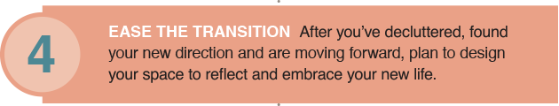 Facing change in our lives can be difficult. We can help gently guide the process by helping you embrace your “new normal” and move forward with your life’s journey, one step at a time. Developed by personal experience, we’ve created a practical Step-by-Step guide to help you through the transistion process when you have expereienced loss of a loved one, divorce/end of a relationship or need to move toward a new lifestyle or a new level of care.