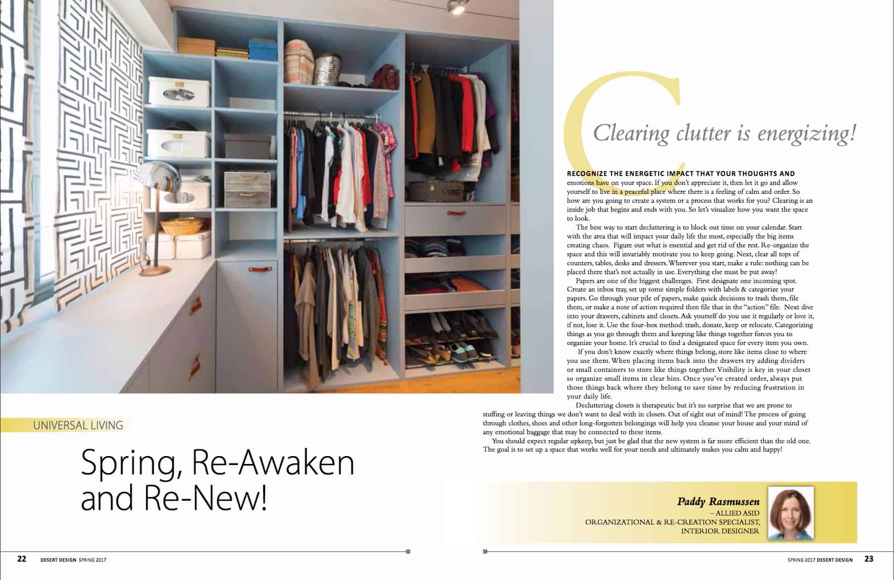 Clearing clutter is energizing! Facebook Twitter Google+ LinkedIn by Paddy Rasmussen, Organizational & Re-Creation Specialist, Interior Designer, Allied ASID Desert Design Article