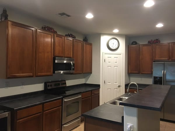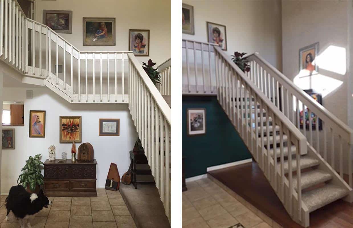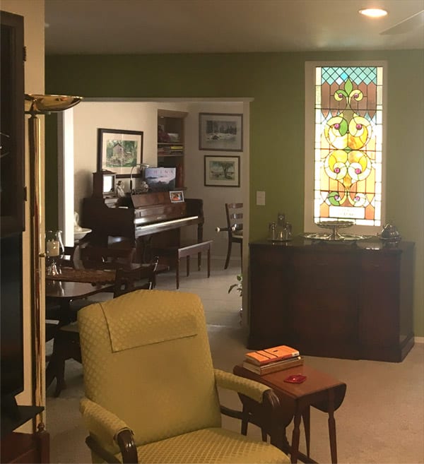 After being widowed, we created a fresh new look by re-upholstering an antique rocking chair and changing the accent wall color in her Great Room.
