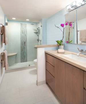To freshen up the Master Bathroom, the client wanted a beige and blue combination that provides a calm spa-like oasis while being visually interesting.